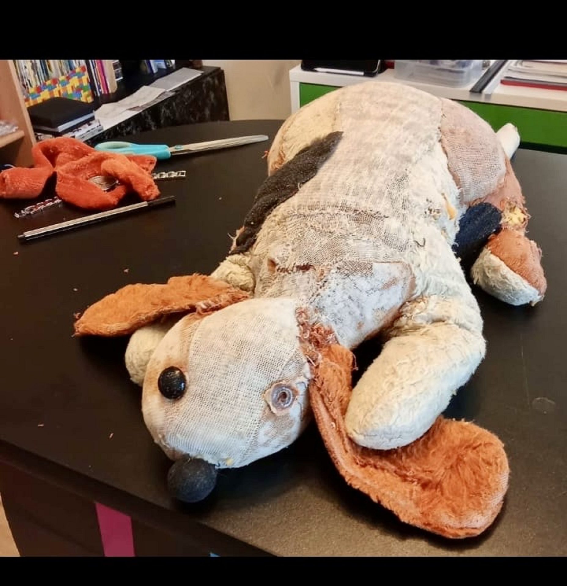 Marylin spricht bei unserem Rundgang voller Liebe über ihre Patienten. „Schau mal, der Arme…“, beginnt sie ihren Satz und zeigt mir dann ein stark mitgenommenes Kuscheltier: Einen Bären, dessen Stoff von Jahren der Nähe und des Tragens ganz dünn geworden ist. Für ihn sucht sie gerade das farblich passende Fellstück, um ihn zu retten. So kann der Teddy seine Identität behalten. Genau das ist der Kern ihrer Arbeit: geliebte Dinge möglichst authentisch bewahren.